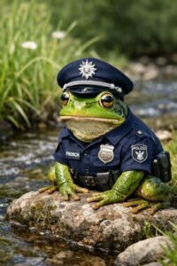 Polizisten haben ja schon oft bewiesen, dass sie ein Herz für Kinder haben. Ob mit Teddybär und Schokolade auf der Wache, Blaulicht-Spaß für den Nachwuchs oder Mini-Ermittler-Urkunden für Kita-Gruppen – Polizei kann auch pädagogisch. Darum wäre es auch nicht völlig abwegig gewesen, wäre ein Officer mal eben in ein Froschkostüm geschlüpft, um einem Kind ein Lächeln zu schenken. Aber nein, diesmal war es anders. Ganz anders.